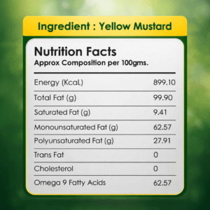 A lighter and milder version of mustard oil, made from premium yellow mustard seeds through cold pressing. It offers a subtle flavor and is perfect for light cooking. Known for its digestive benefits and skin-friendly properties.